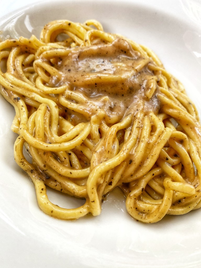 Con l’aiuto di un mixer tritiamo le noci con il latte, il parmigiano, l’olio e un pizzico di sale. Una volta ottenuta la salsa la spostiamo in un tegame a cui andremo ad aggiungere anche il trito di tartufo e scaldiamo per qualche minuto.