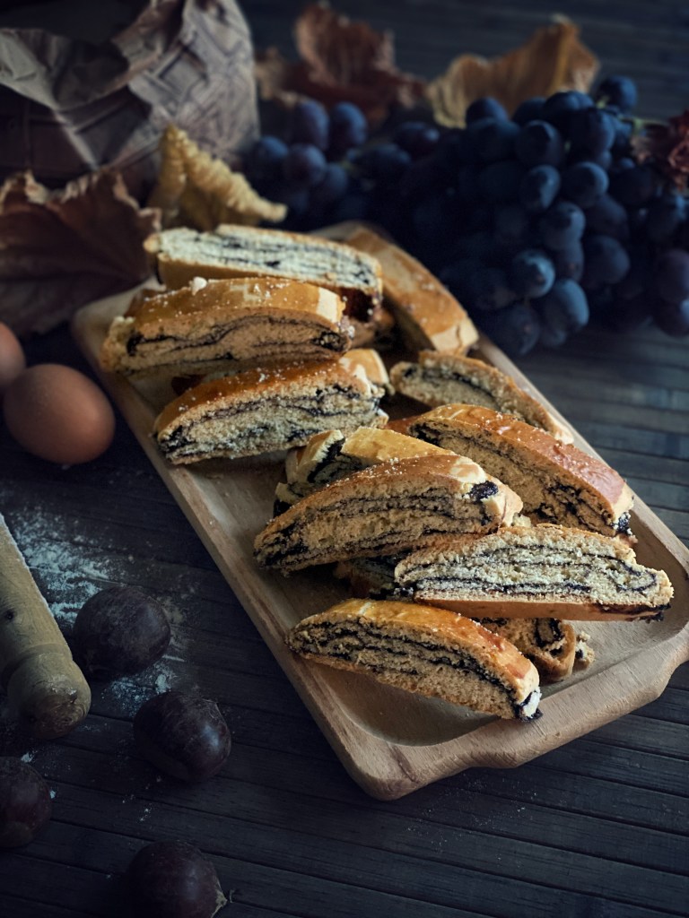 La ricetta originale prevede l’utilizzo della “scrucchiata” (confettura di uva Montepulciano) ma puoi utilizzare una qualsiasi marmellata di uva, o di altri gusti a tuo piacimento. Per una versione più golosa puoi anche farcire con una crema spalmabile alle nocciole o al cioccolato.